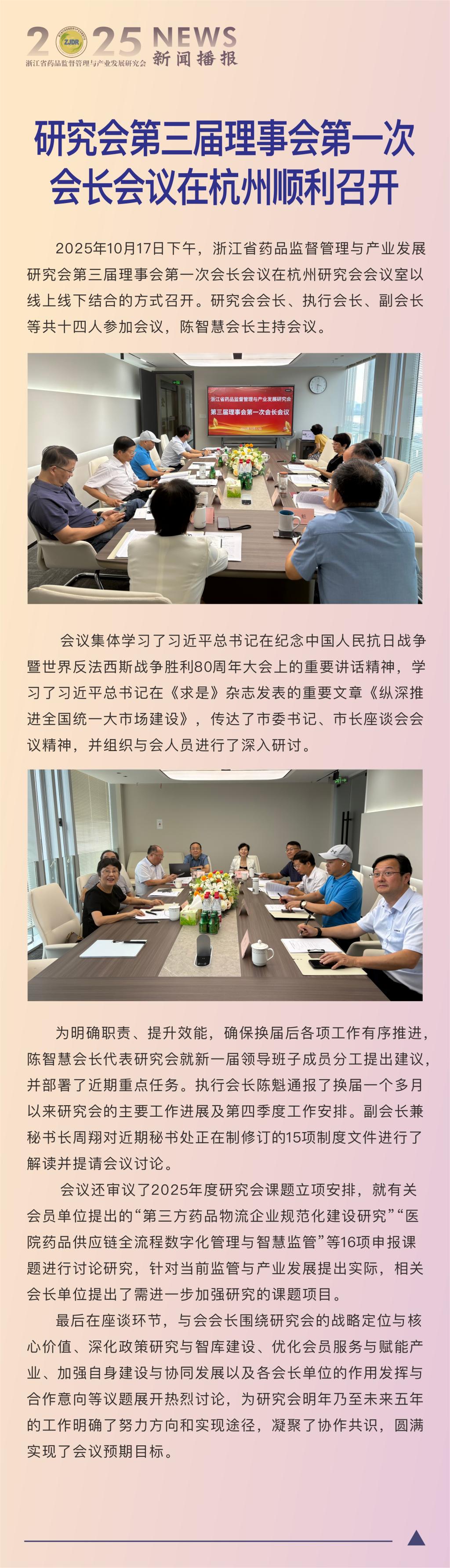 研究会第三届理事会第一次会长会议在杭州顺利召开