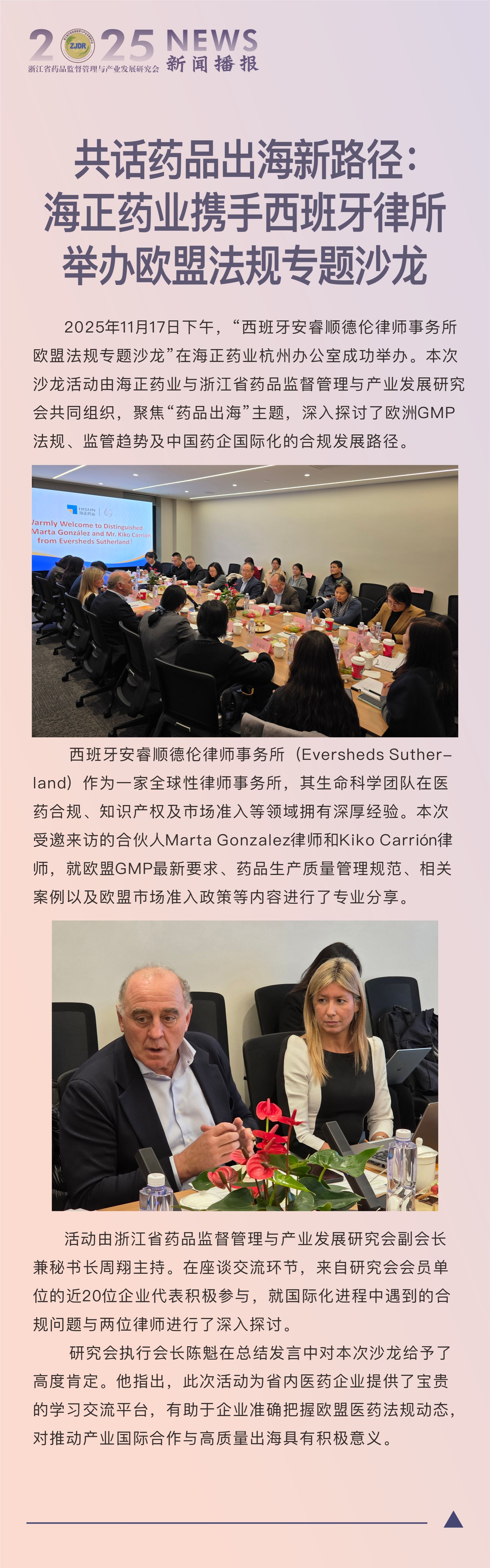共话药品出海新路径:海正药业携手西班牙律所举办欧盟法规专题沙龙