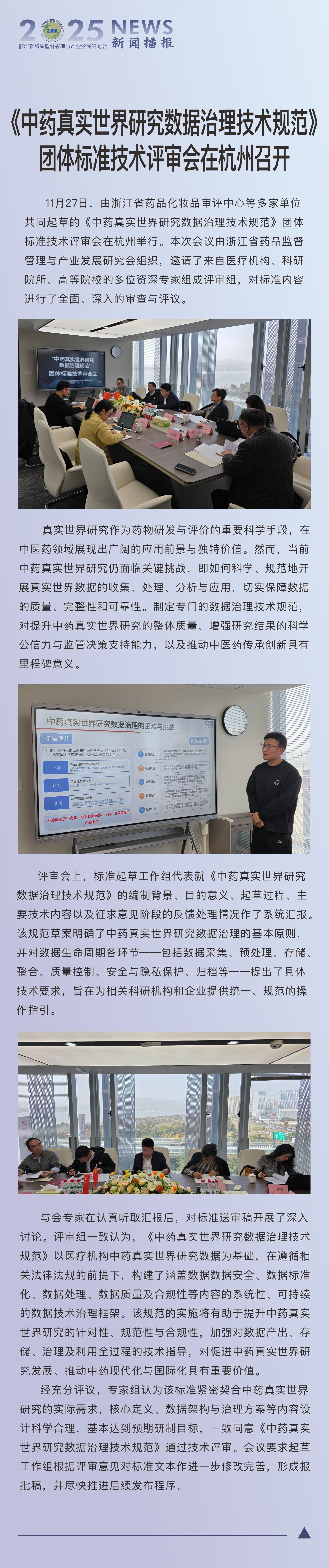 《中药真实世界研究数据治理规范》团体标准技术评审会在杭州召开